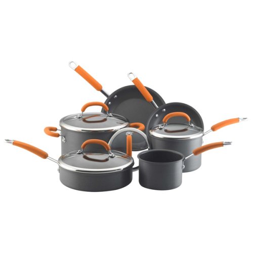 Cheap Rachael Ray Hard Anodized Nonstick 10-Piece Cookware Set, Orange Review